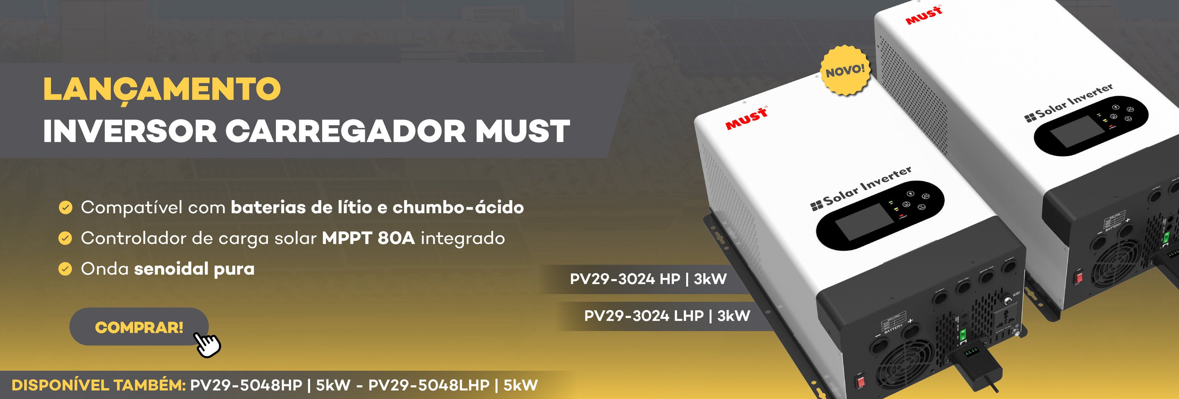 Inversor Carregador Off Grid Must PV29-3024 HP - 3000W - MPPT 80A - 24/220V